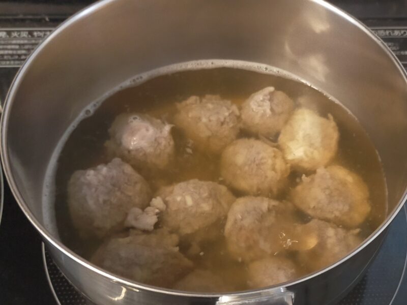 - 沸騰し3分ほどで出汁パックを取り出す。